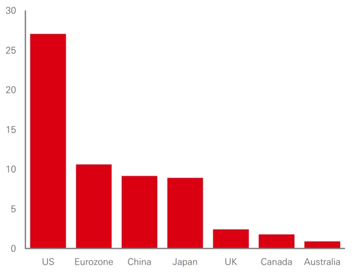 - Euro bond markets are further bolstered by increased foreign inflows, the eurozone’s transition to a net lender position globally, and stability provided by the EU’s institutional framework