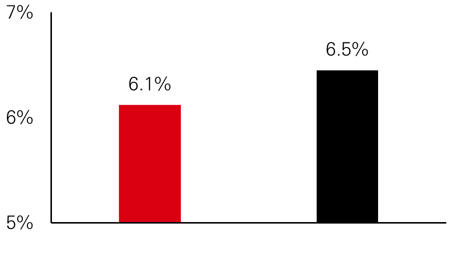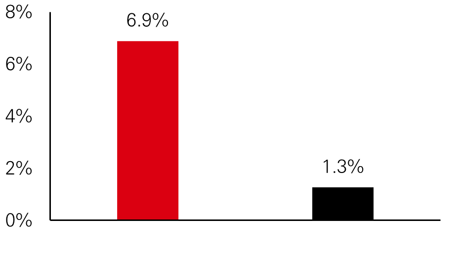 6. Source: HSBC Alternative Investments Limited, Bloomberg, HFRI Inc. As at January 2026. Performance period May 1996 to January 2026. Performance of the HFRI Fund Weighted Index, Bloomberg Global Aggregate Total Return Index, MSCI Hedged World USD Index and the 60/40 index (represented by a 60 per cent allocation to MSCI Hedged World USD Index & a 40 per cent allocation to the Bloomberg Global Aggregate Total Return Index. There is no guarantee the trend illustrated by the chart above will continue.
