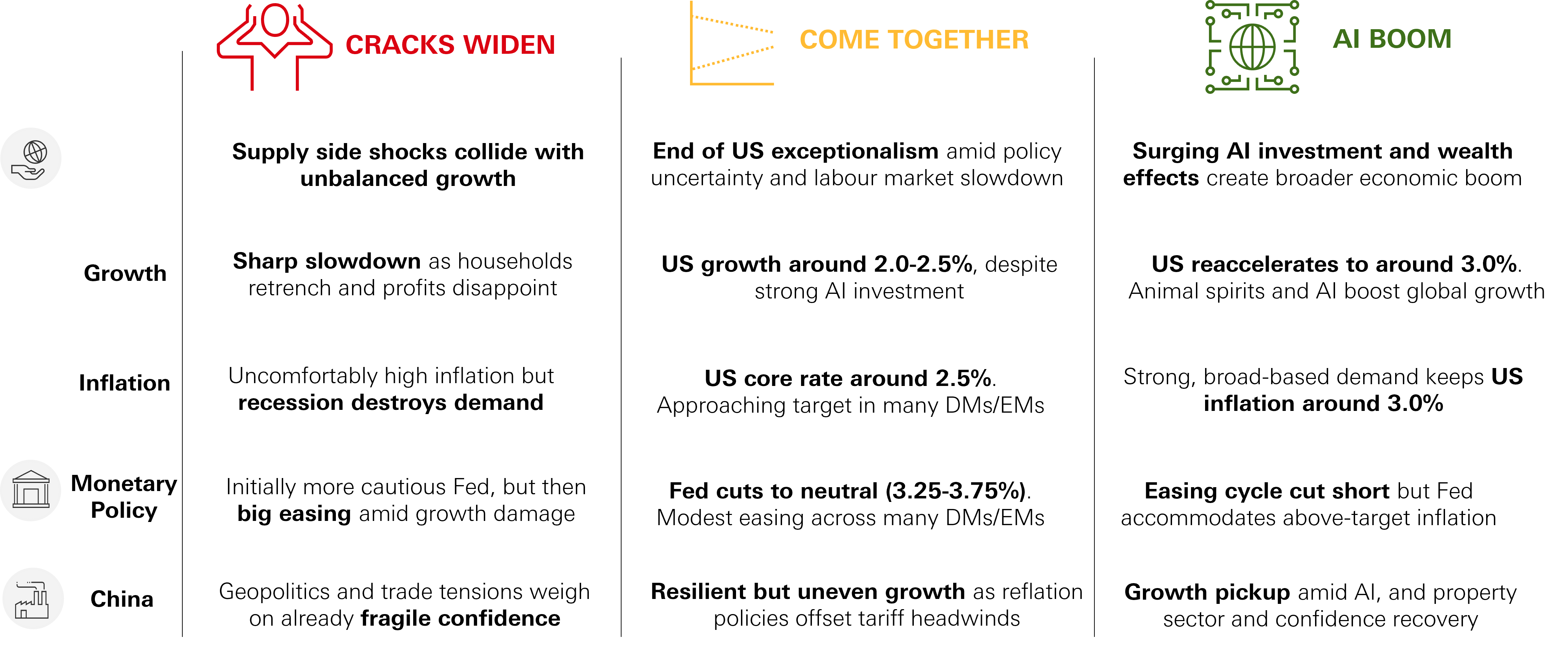 - The US Fed should have room to look through a near-term inflation bump and cut modestly from late 2026. But central banks in Europe and the UK face a tougher test to manage inflation risks without crushing growth