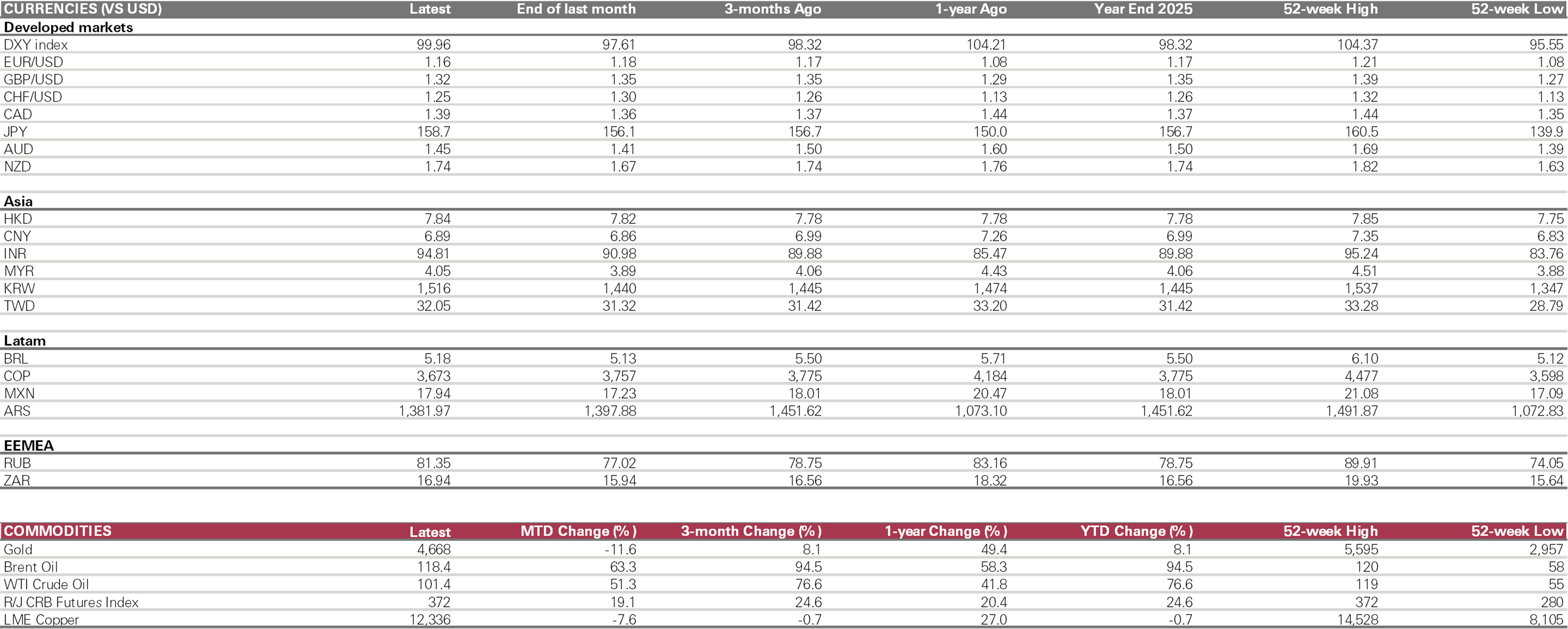 - Equities – Surging energy prices have stalled the past year’s key market theme: the "broadening out" that delivered strong performance across Europe and emerging markets. A retreat in oil prices below USD100 could quickly revive it