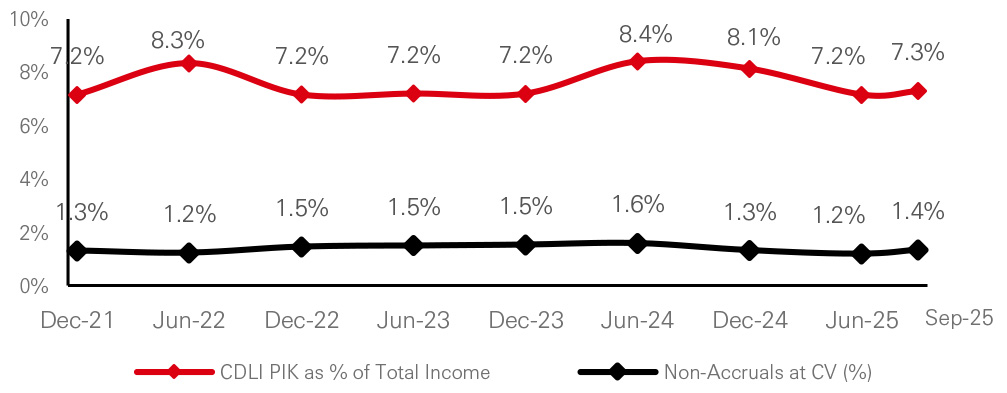 PIK income increased modestly in Q3 2025 but remains in line with the five-year average